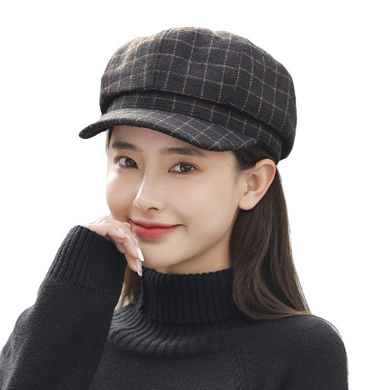 贝蕾帽女秋冬2024帽子八角帽画家大脸英伦韩版软顶短檐格子鸭舌帽