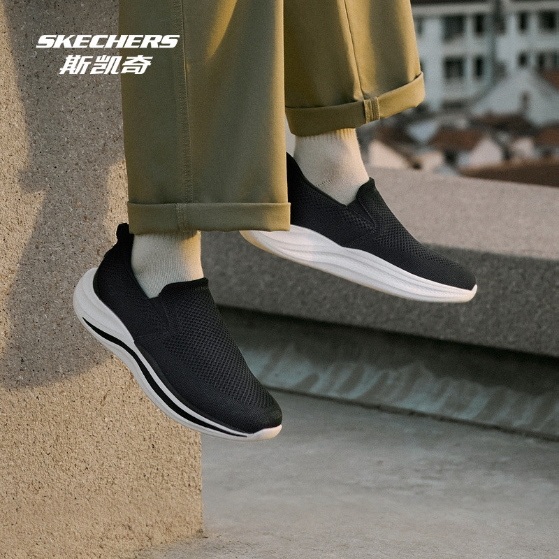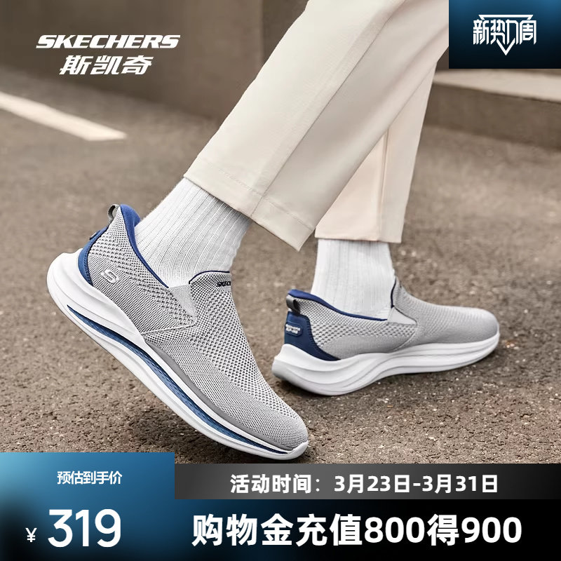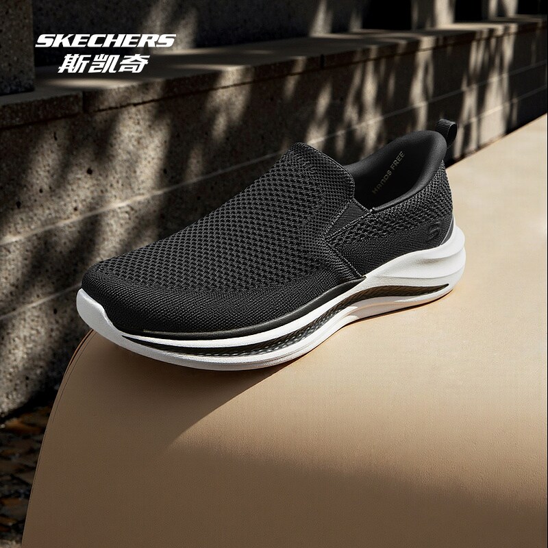 斯凯奇闪穿健步鞋新款男鞋一脚蹬透气网面休闲鞋舒适运动鞋