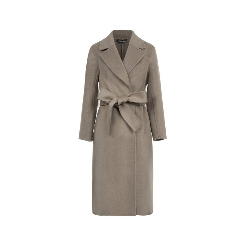 sdeer圣迪奥女装西装领收腰毛呢长款大衣S22482515