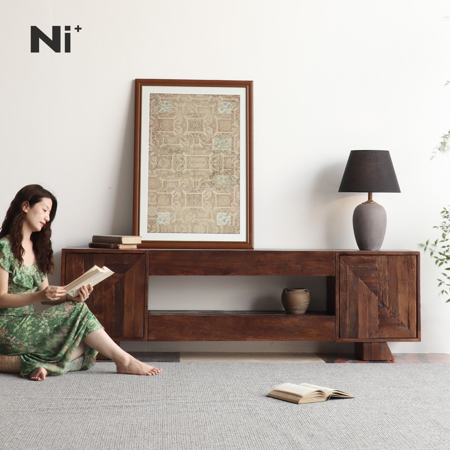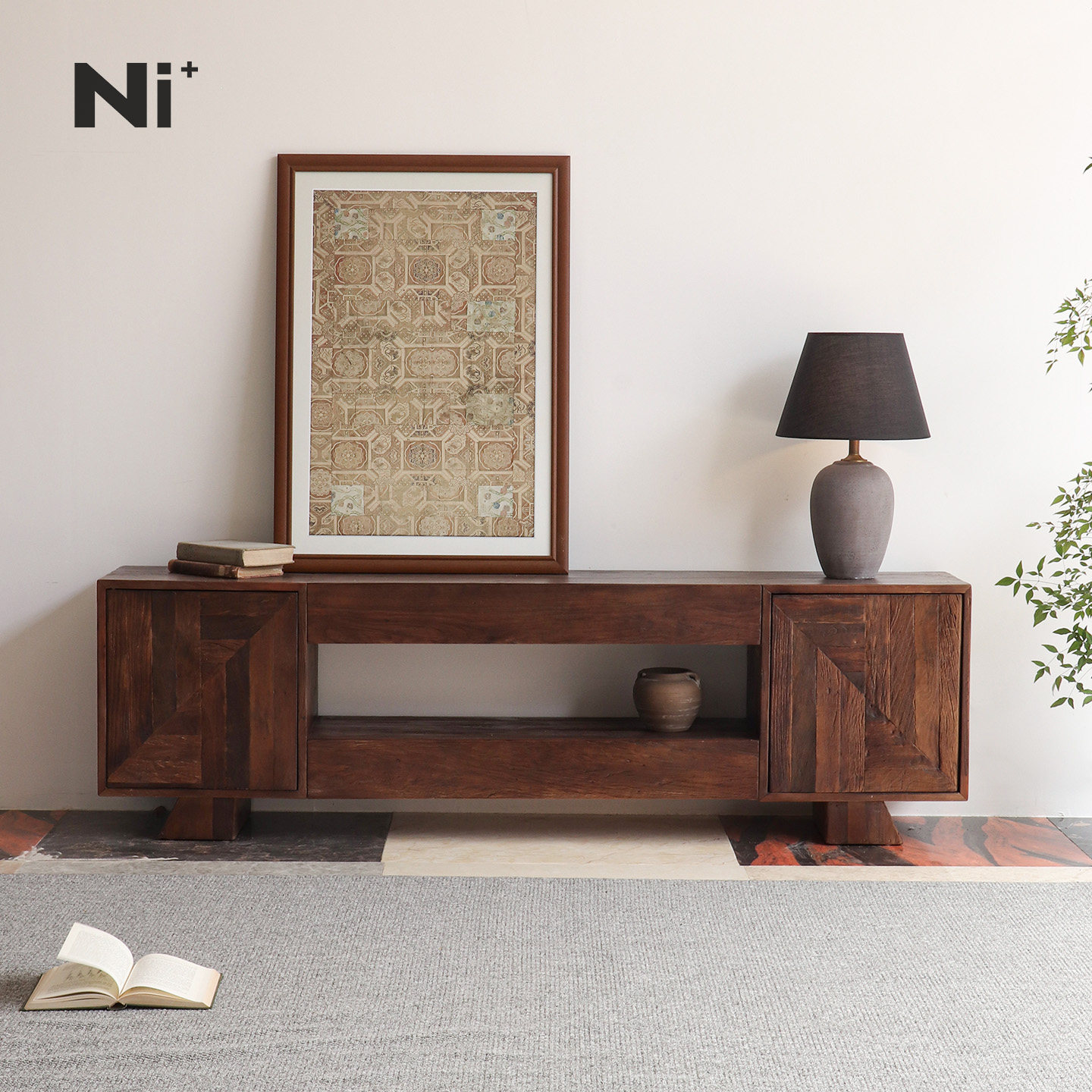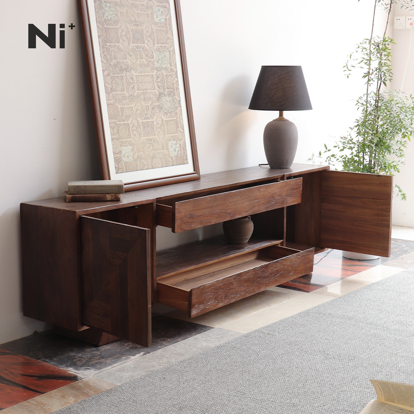 Ni+尼家中古风电视柜实木复古电视机柜客厅工业风卧室侘寂风边柜