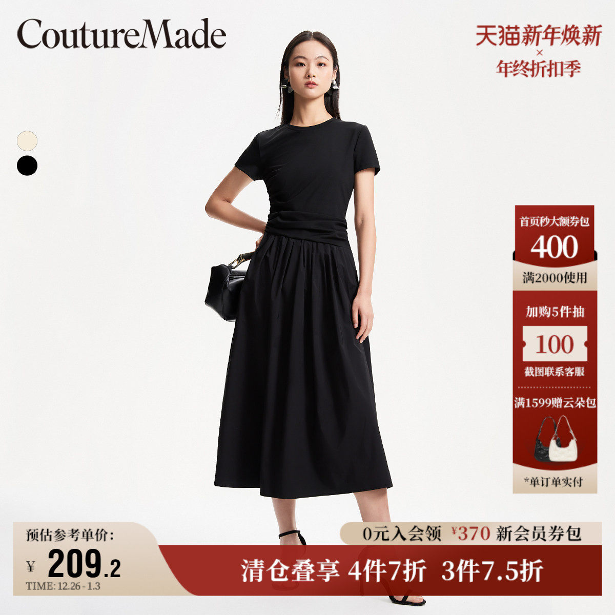 森马连衣裙女收腰T恤裙小心机夏季2025新款绣花圆领短裙简约休闲