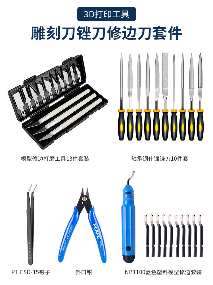 3D打印机模型清理雕刻刀锉刀修边刀套件 打磨修边实用DIY工具套装