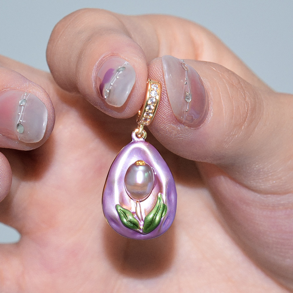 莫奈花园油画风万用扣吊坠女淡水珍珠DIY单坠高级感法式配件