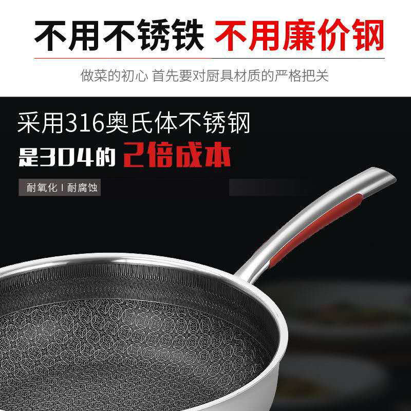 苏泊尔316不锈钢煎锅不粘平底煎炒煮炖燃气电磁炉通用不生锈家用X