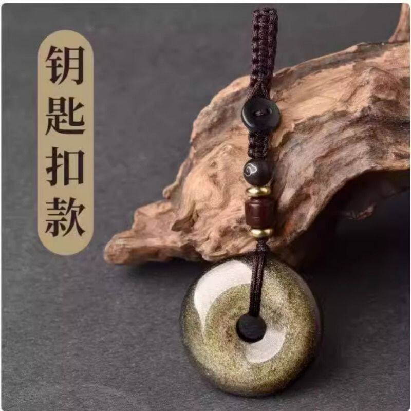 悦卜天然金曜石平安扣吊坠天然猫眼黑曜石情侣挂坠钥匙扣挂件项链