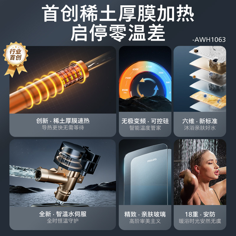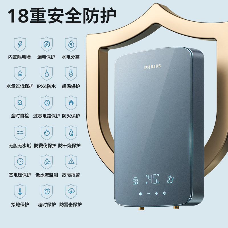 飞利浦即热式电热水器洗澡家用稀土厚膜水伺服恒温变频洗澡神器