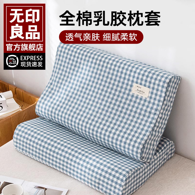 无印良品水洗棉纯棉全棉乳胶枕套一对装30x50枕头套单人双人60x40