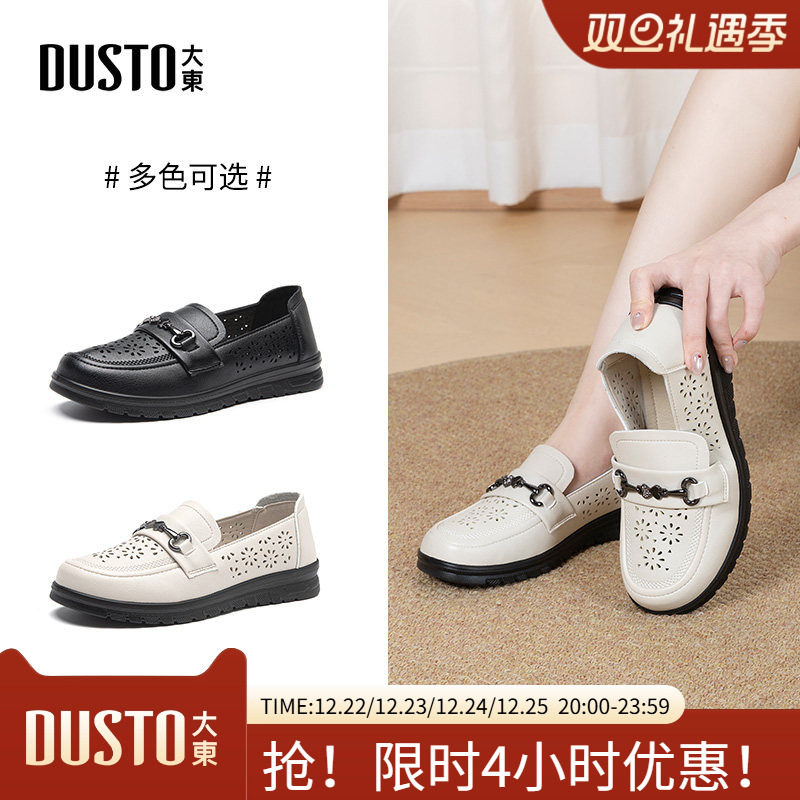 大东妈妈鞋女鞋2025秋季新款休闲平底低跟套脚圆头镂空饰扣C5003