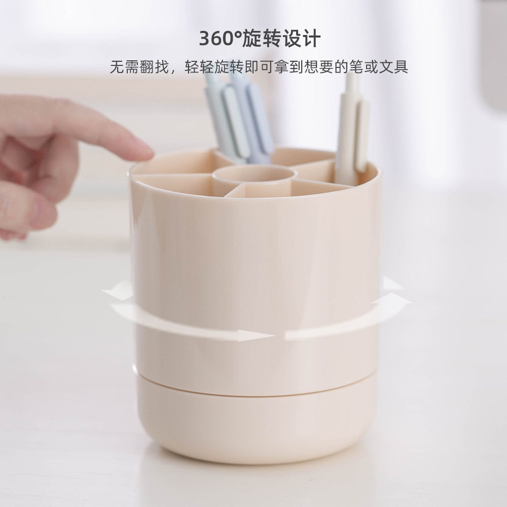 创意360°旋转笔筒 化妆笔刷唇膏眉笔文具美工刀桌面圆形收纳桶