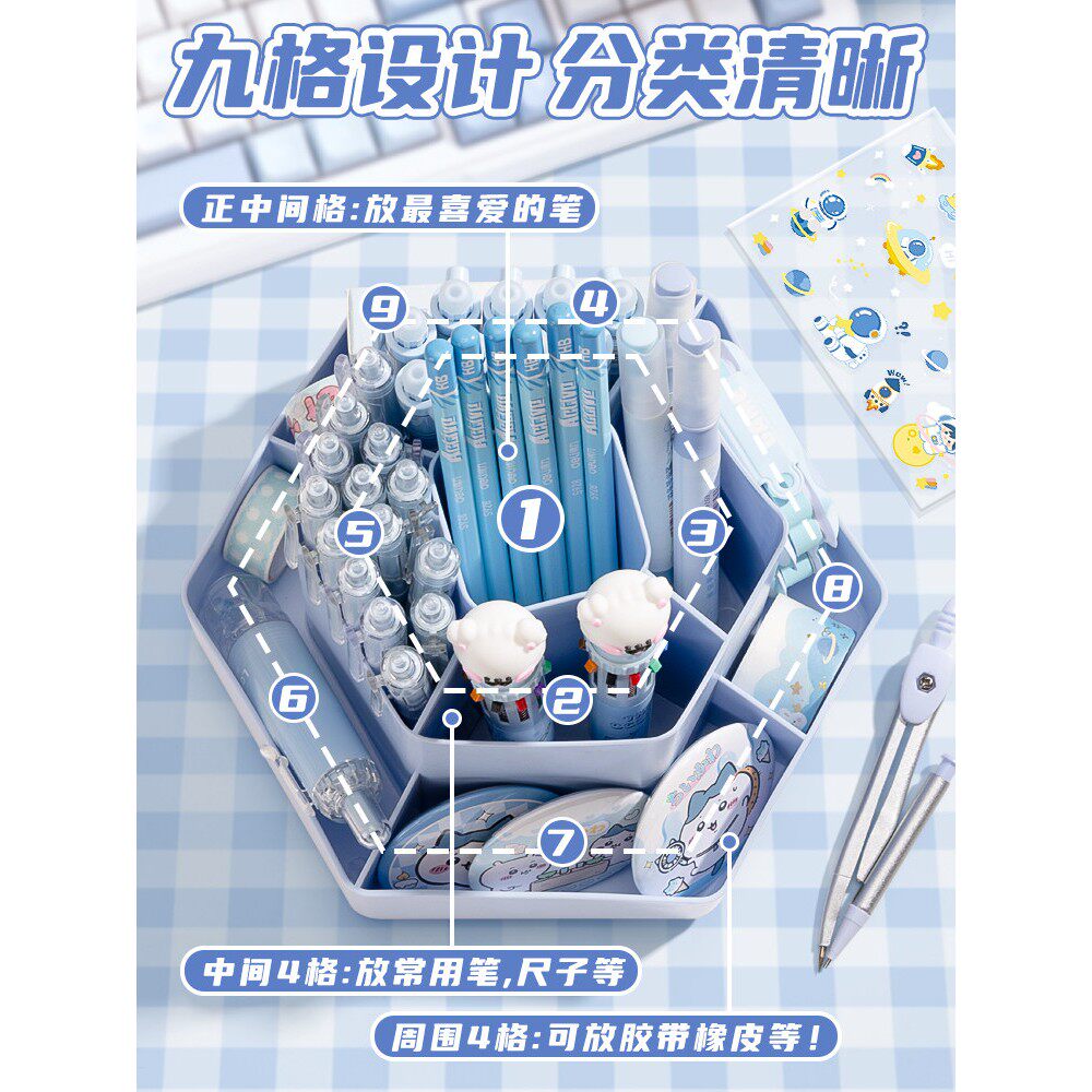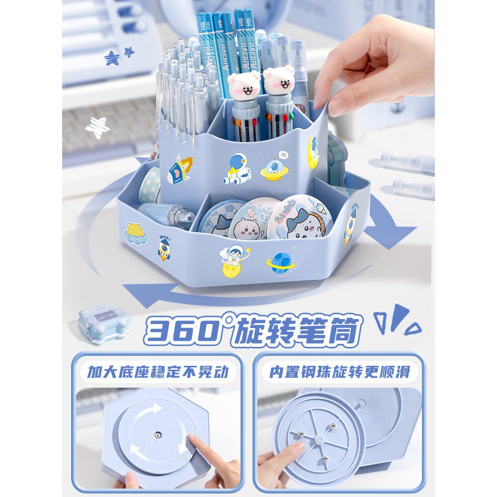 宇航员来了!笔筒收纳盒大容量儿童学生书桌抽屉式一体360度旋转笔桶高颜值男孩桌面文具收纳盒放笔的置物架