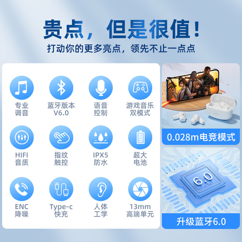 100小时续航ENC降噪无线蓝牙耳机运动2026款正品适用苹果小米华为