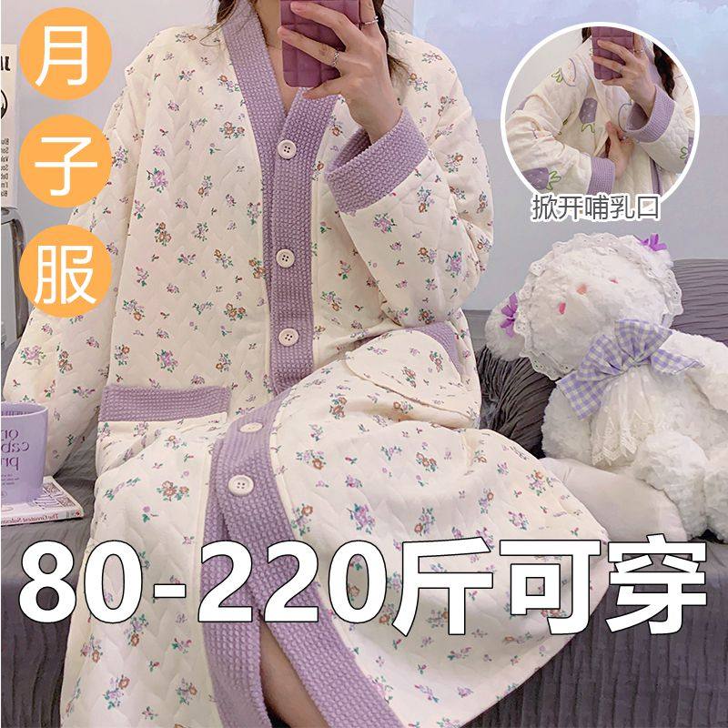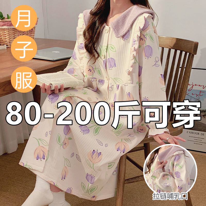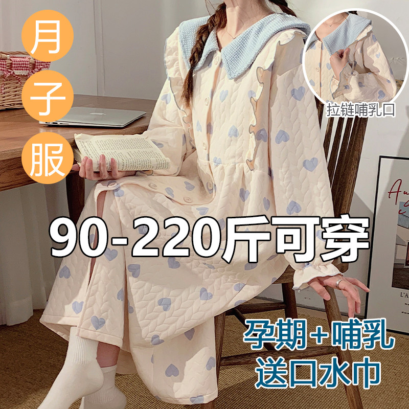 孕产妇秋冬季待产空气棉睡裙月子服哺乳衣产检睡衣大码200斤长裙