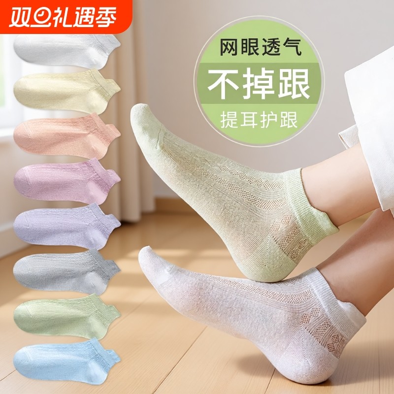 袜子女短袜夏季薄款棉袜夏天吸汗浅口网眼透气隐形船袜防滑不掉跟