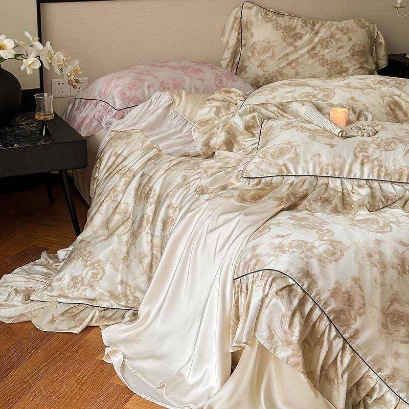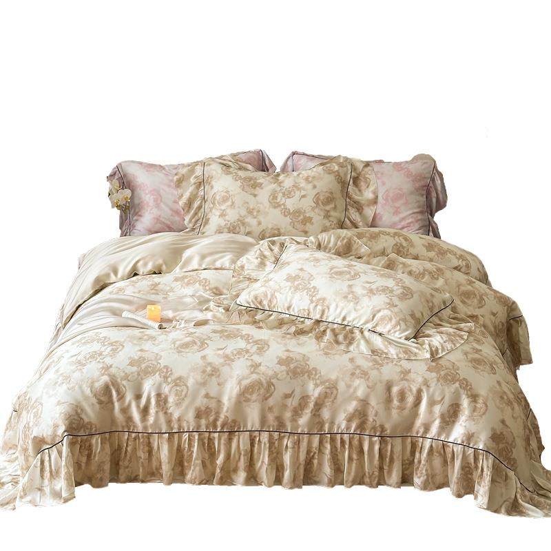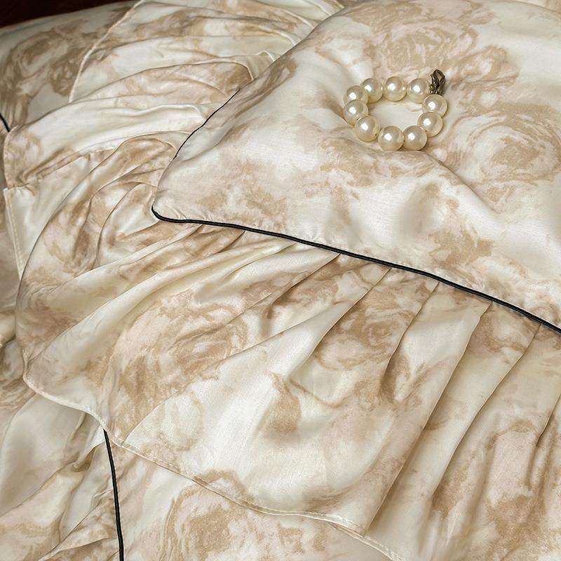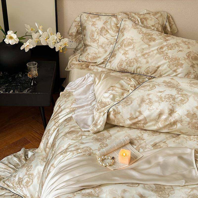夏季60支兰精天丝床上四件套冰丝凉感裸睡床单被套复古风夏天床品
