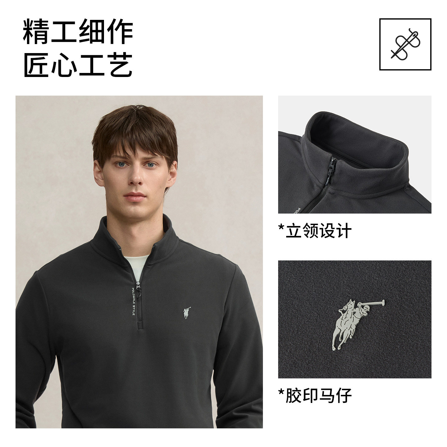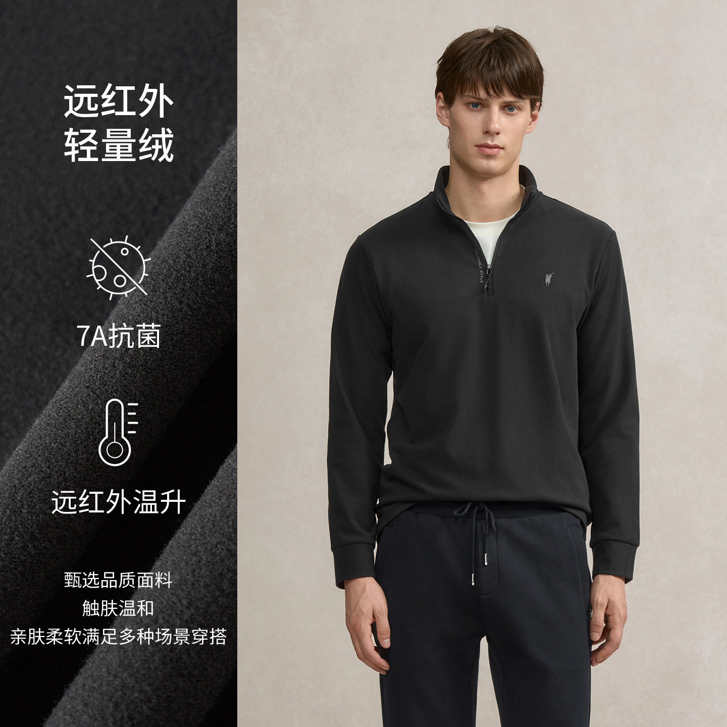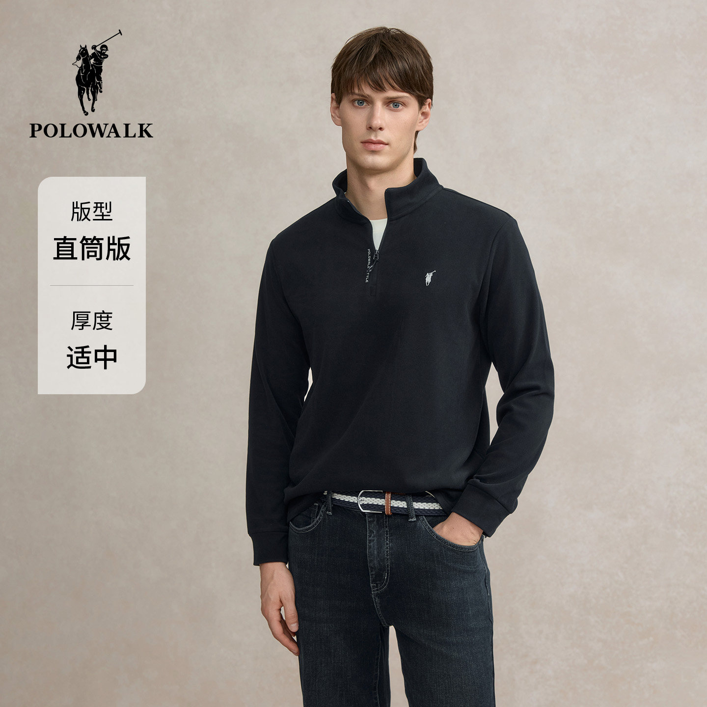 【7A抗菌】POLOWALK男式长袖T恤2025冬季新品百搭休闲半拉链上衣