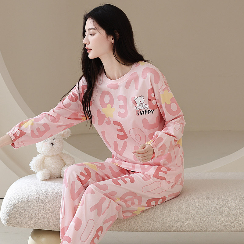 睡衣女秋季长袖纯棉紧口套装2025年新款春秋款甜美100%全棉家居服