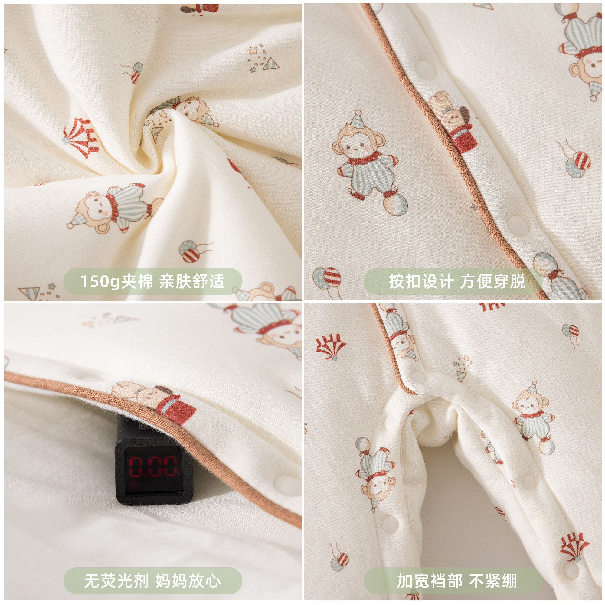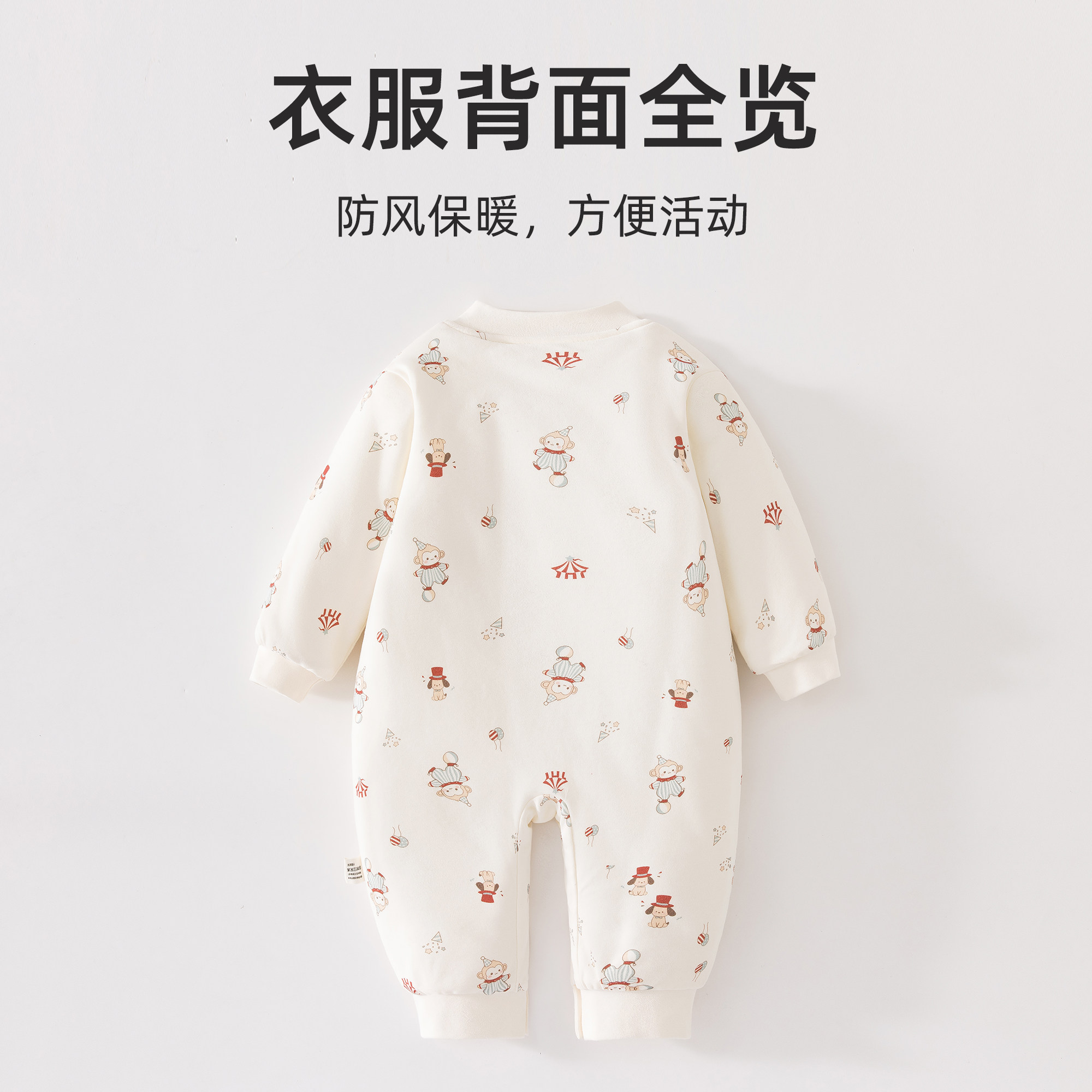 贝肽斯婴儿薄夹棉连体衣冬装外出新生幼儿宝宝衣服保暖空气棉睡衣