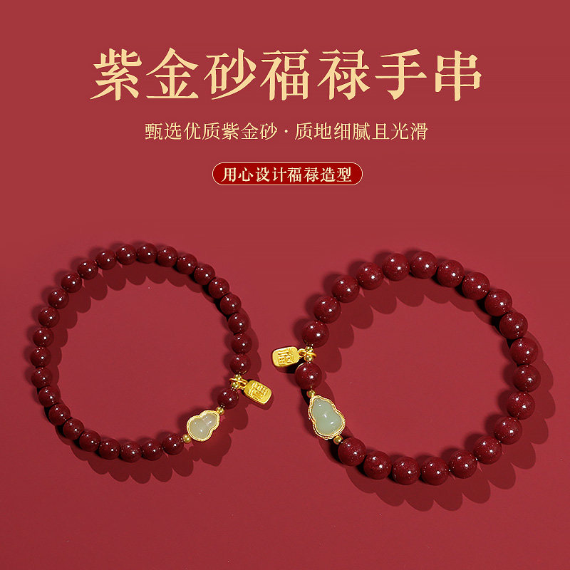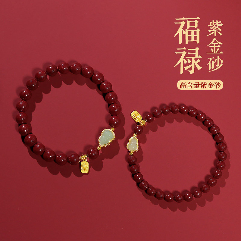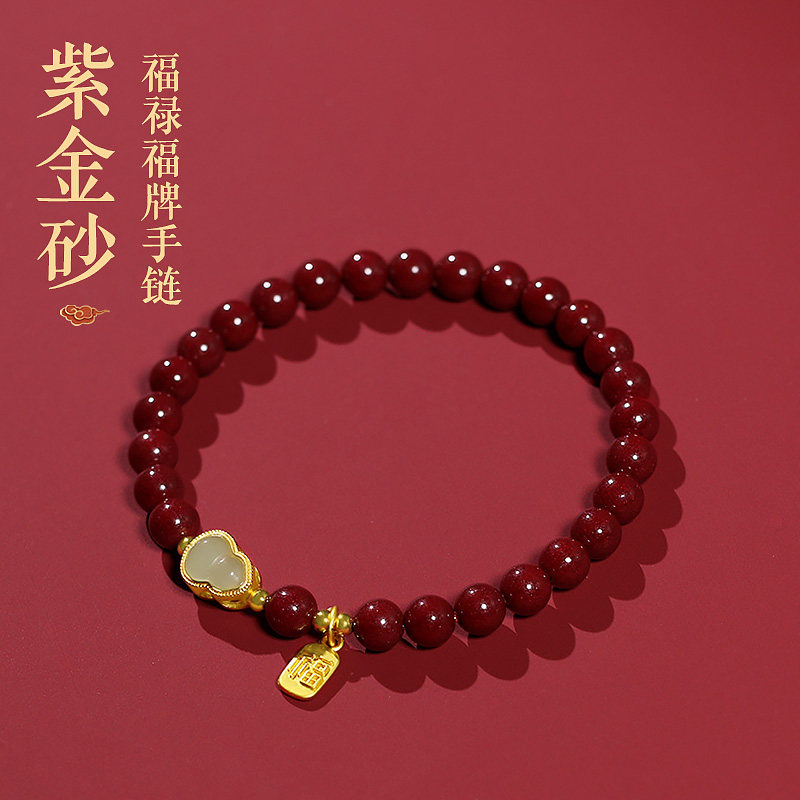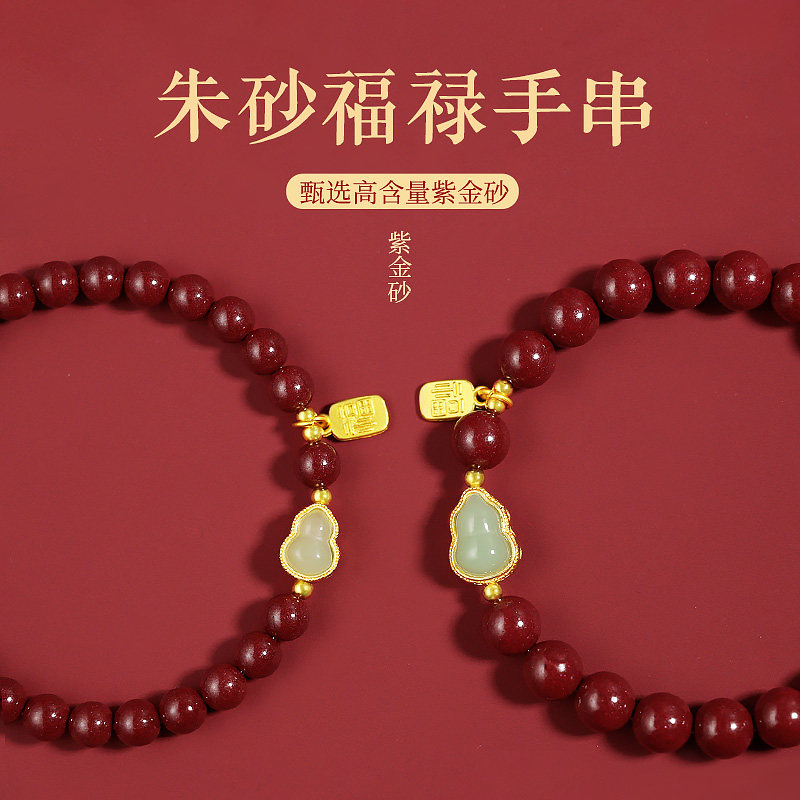 天然朱砂色福牌手串葫芦朱砂手链女款男马年本命年护身符原紫金砂