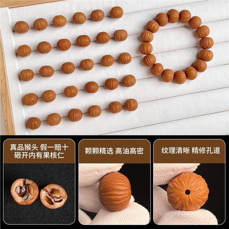 散珠猴头手串男士野生核桃文玩手工DIY菩提子女佛珠配珠原籽老树