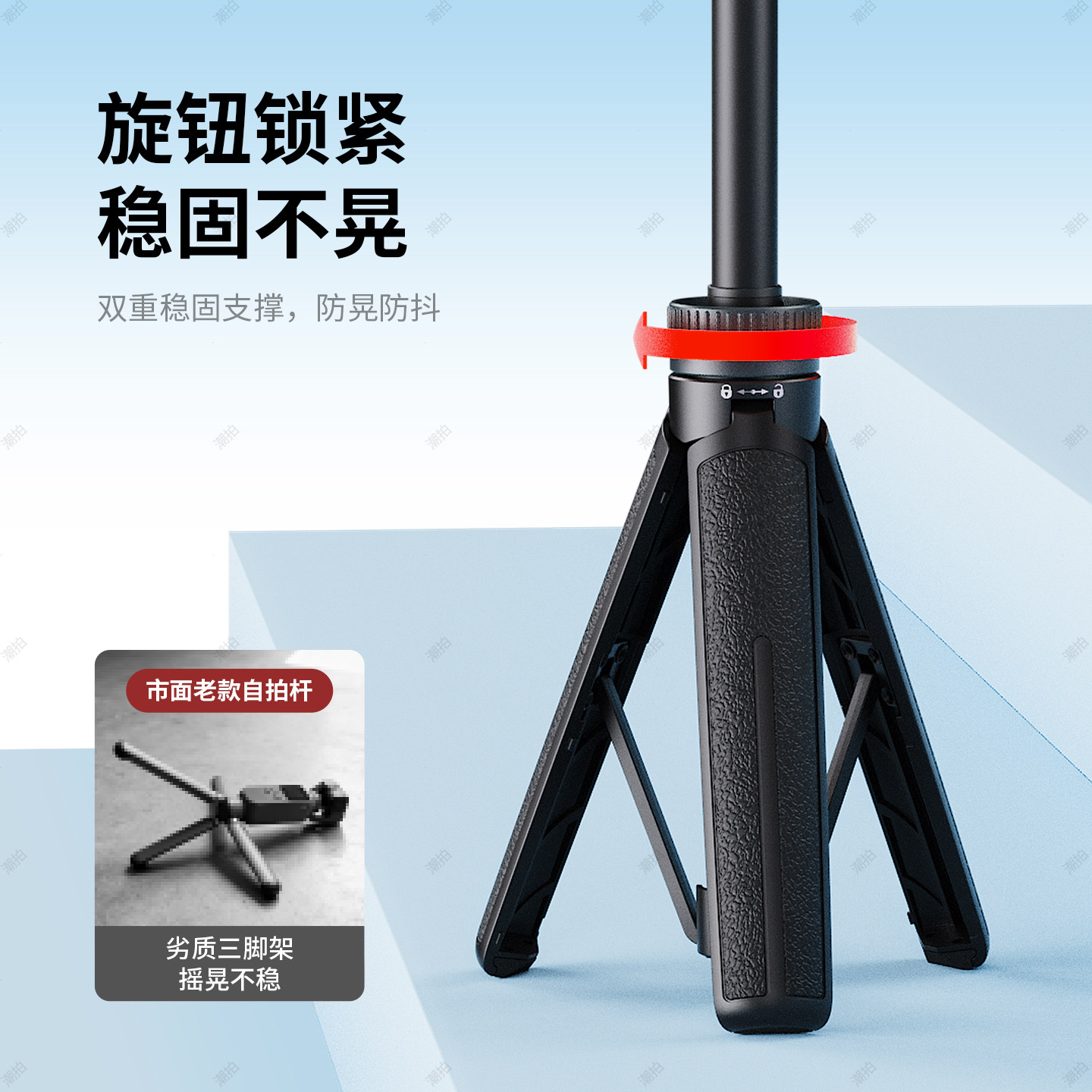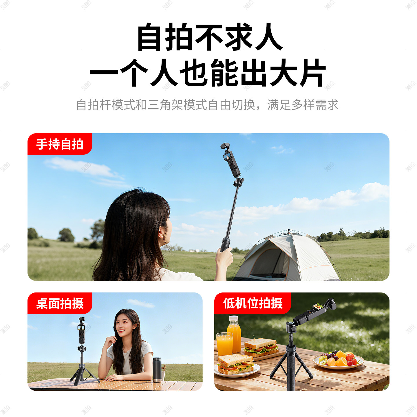 潮拍适用DJI大疆pocket3三脚架手持自拍杆可延长落地支架口袋云台运动相机手机桌面迷你便携伸缩三角架配件