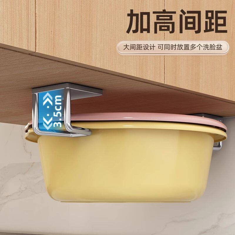 浦司不锈钢脸盆收纳架盆子浴室柜下卫生间置物挂钩免打孔挂盆神器