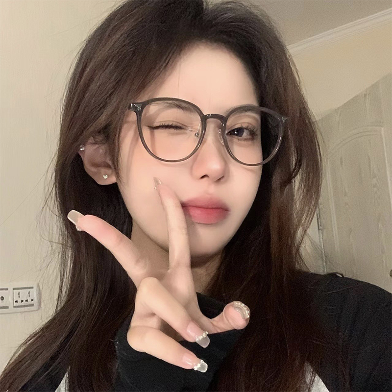 防蓝光近视超轻圆框近视眼镜框女款冷茶时尚眼镜架配凯米U6镜片K