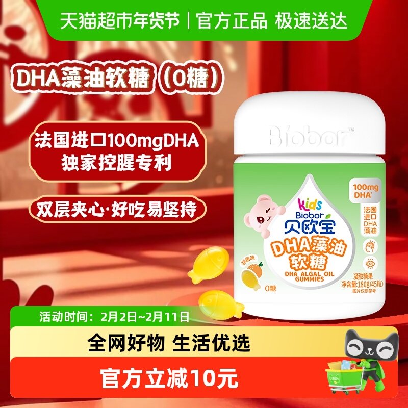 贝欧宝0糖DHA藻油软糖0腥味法国进口DHA高含量100mg儿童营养软糖