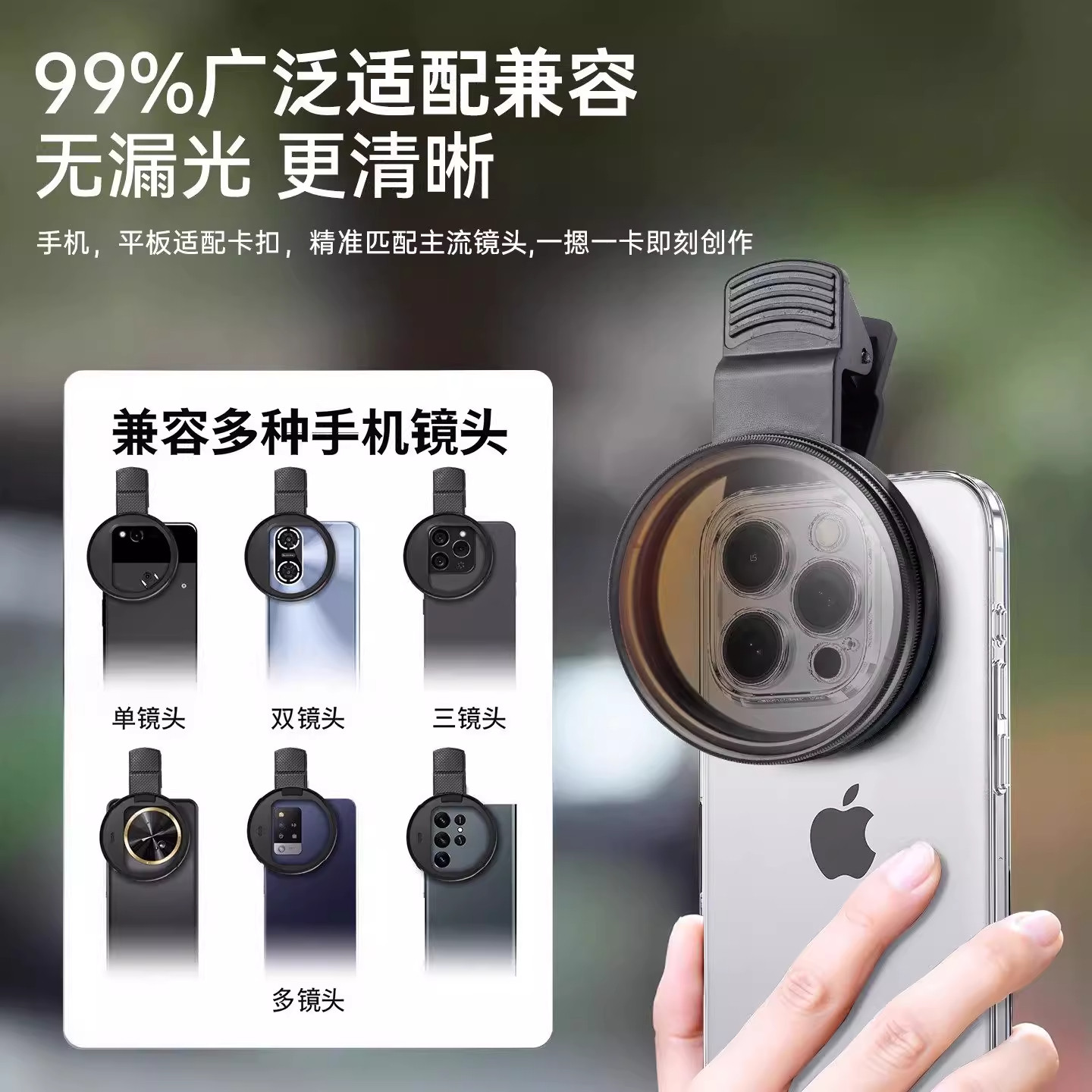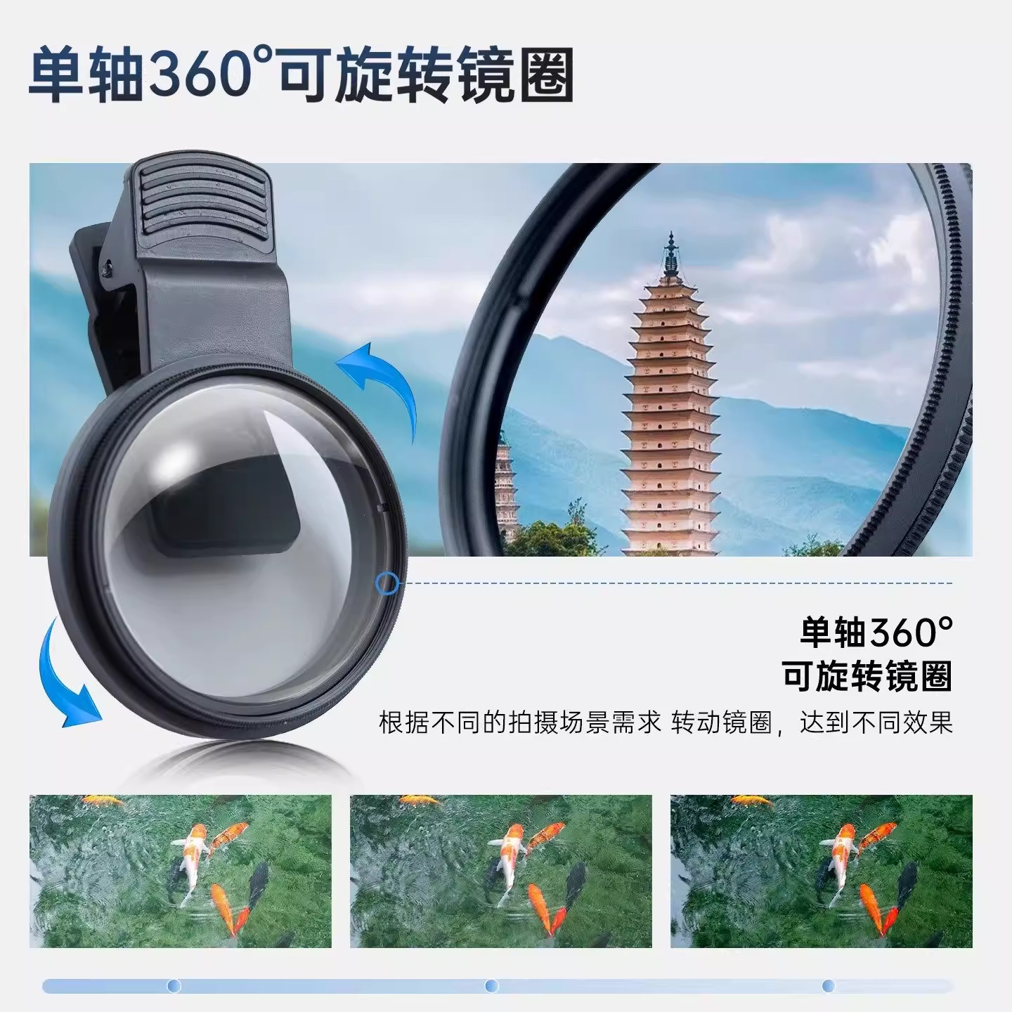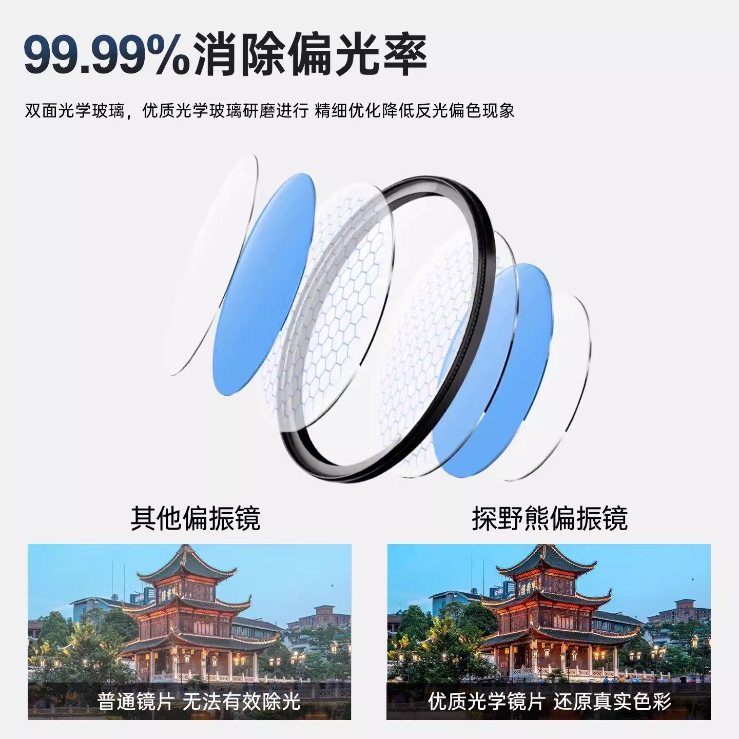 探野熊手机专用偏振镜高清镀膜偏光消除反光增艳色彩滤镜拍摄神器