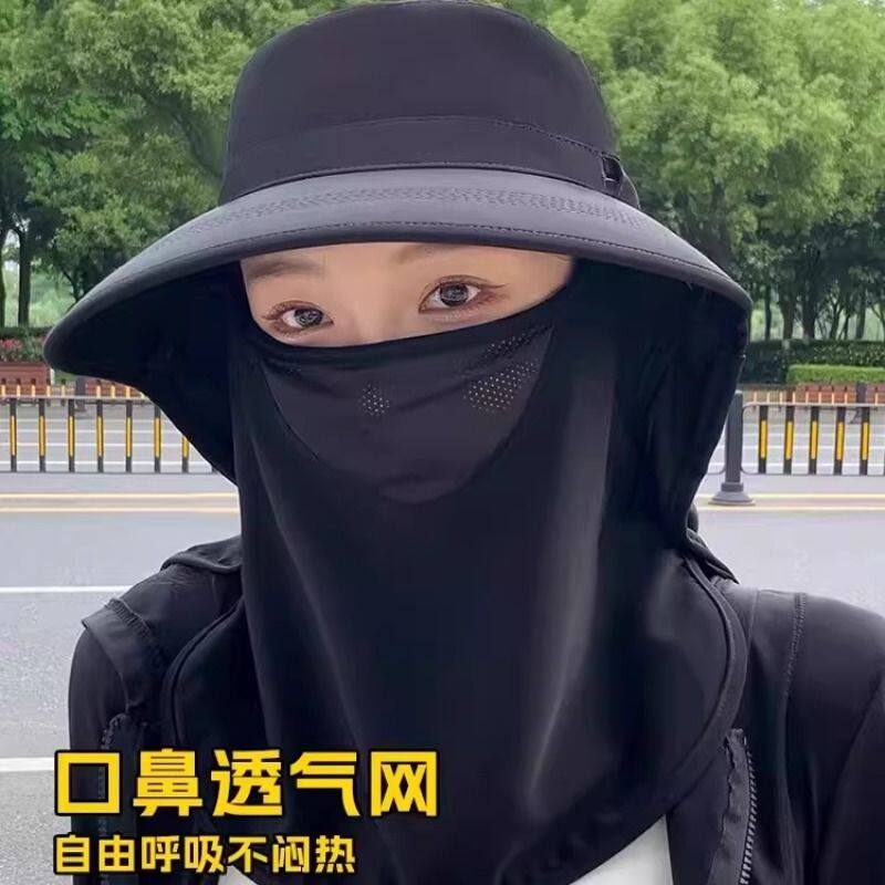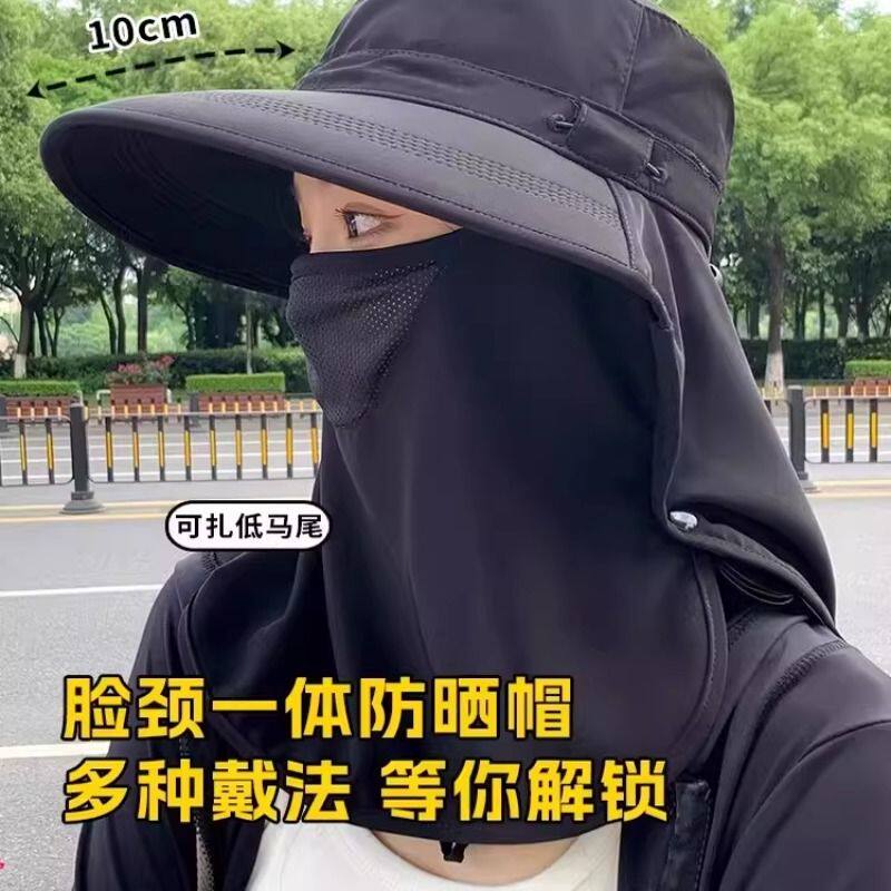 防晒帽透气遮脸面罩护颈一体太阳帽防紫外线遮阳帽夏女防风全脸