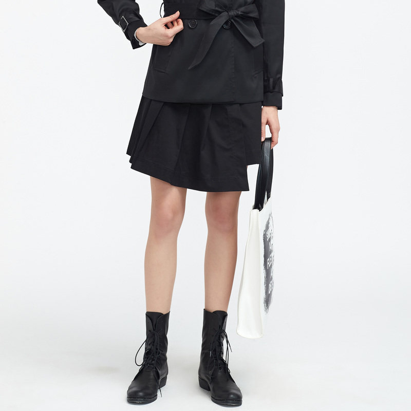 S·DEER圣迪奥青春休闲腰带斜摆A字百褶裙S21181301