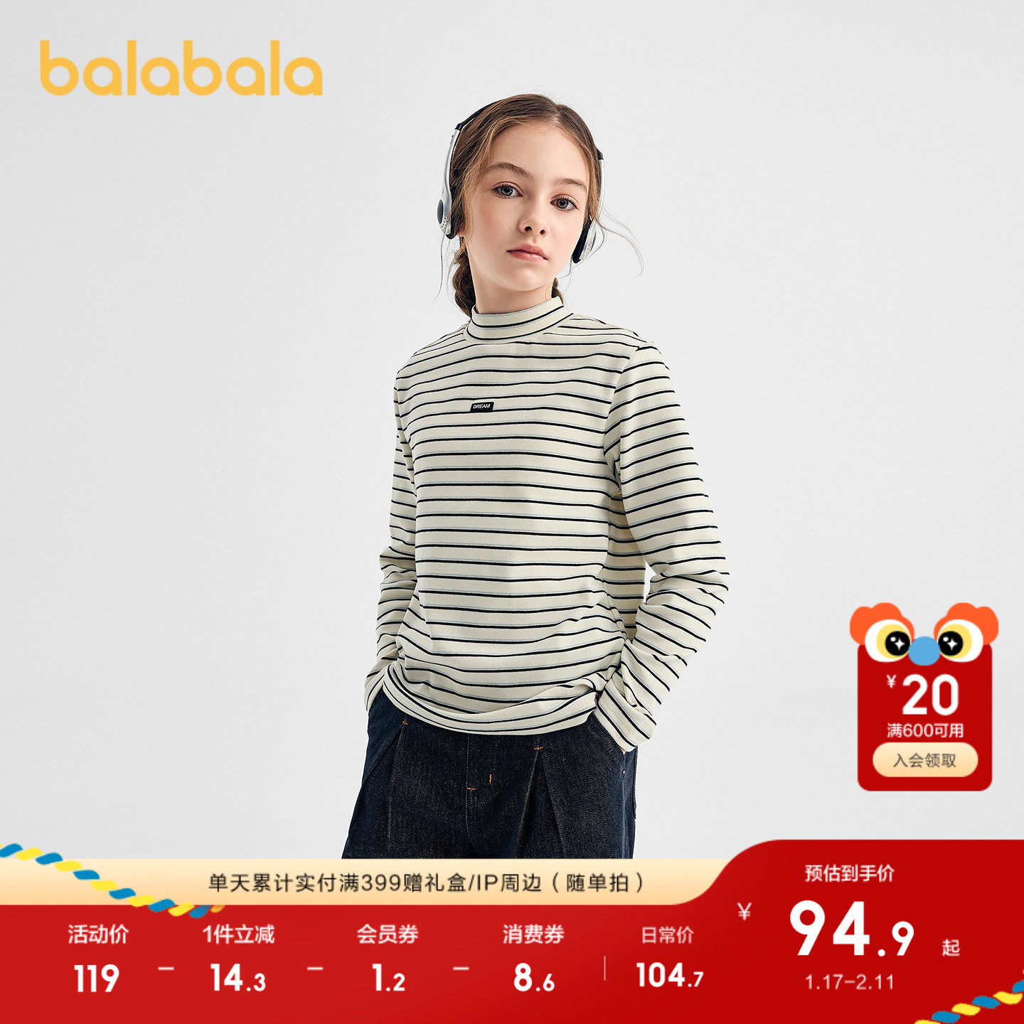 【商场同款】巴拉巴拉童装儿童长袖t恤男女童2025冬新款百搭上衣