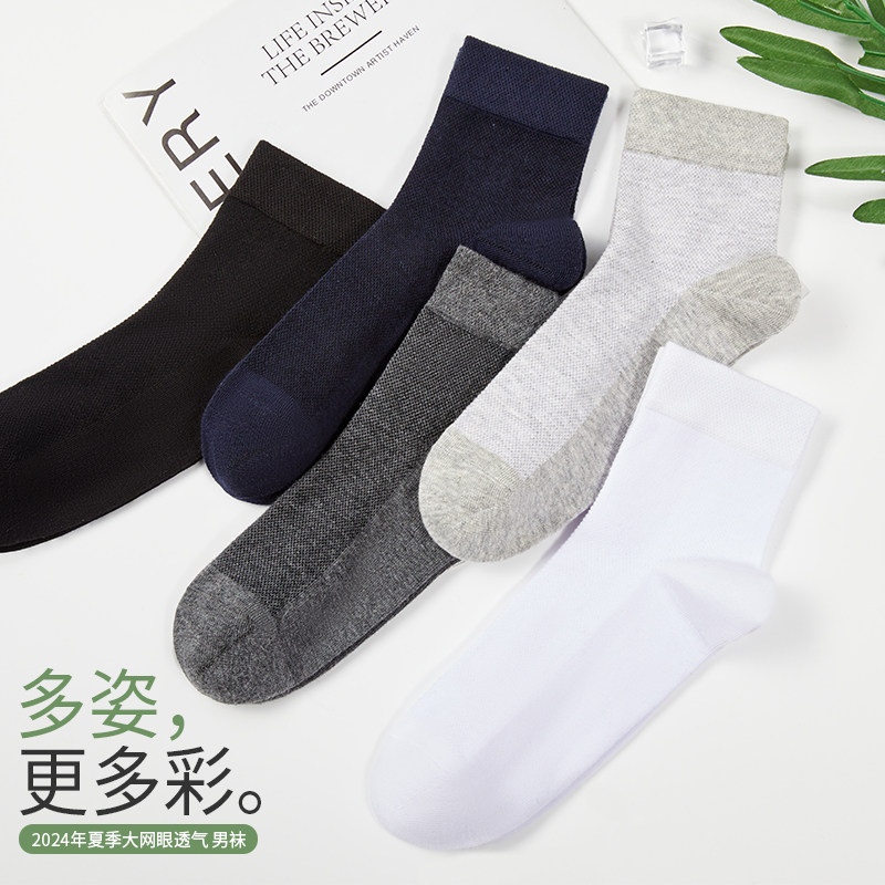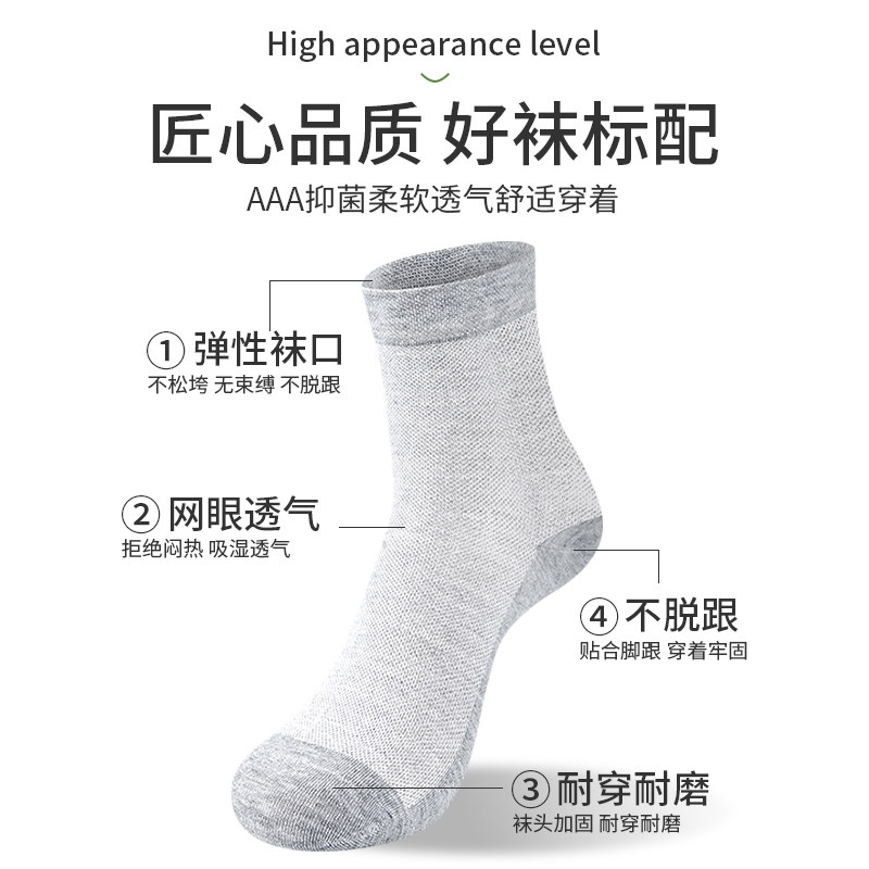 20双袜子男士夏天纯棉透气中筒大码10A夏季薄款男袜白色抗菌防臭