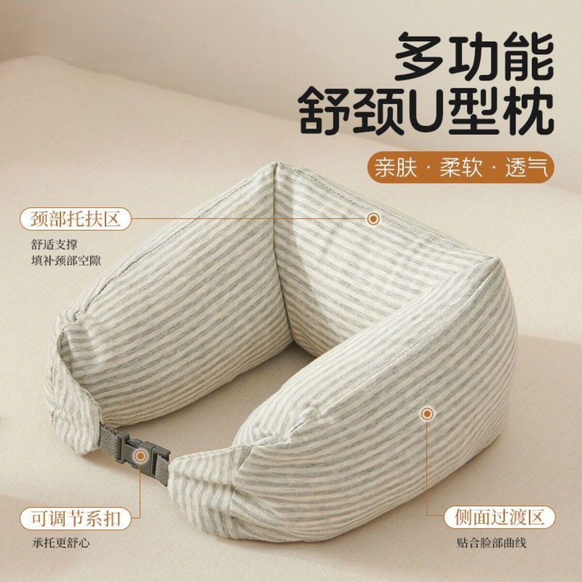 自此间U型枕可调节护颈飞机旅行汽车充气便携脖枕双层颈椎U形颈枕