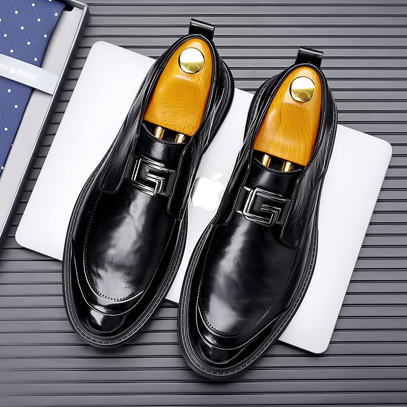 【王浩信同款】chioryn青润德比鞋法国小牛皮增高5cm男士亮面皮鞋