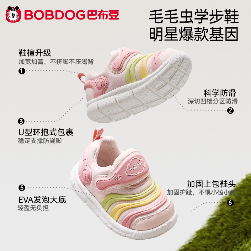 巴布豆女宝宝学步鞋春季新款毛毛虫女童婴儿鞋子机能鞋儿童童鞋