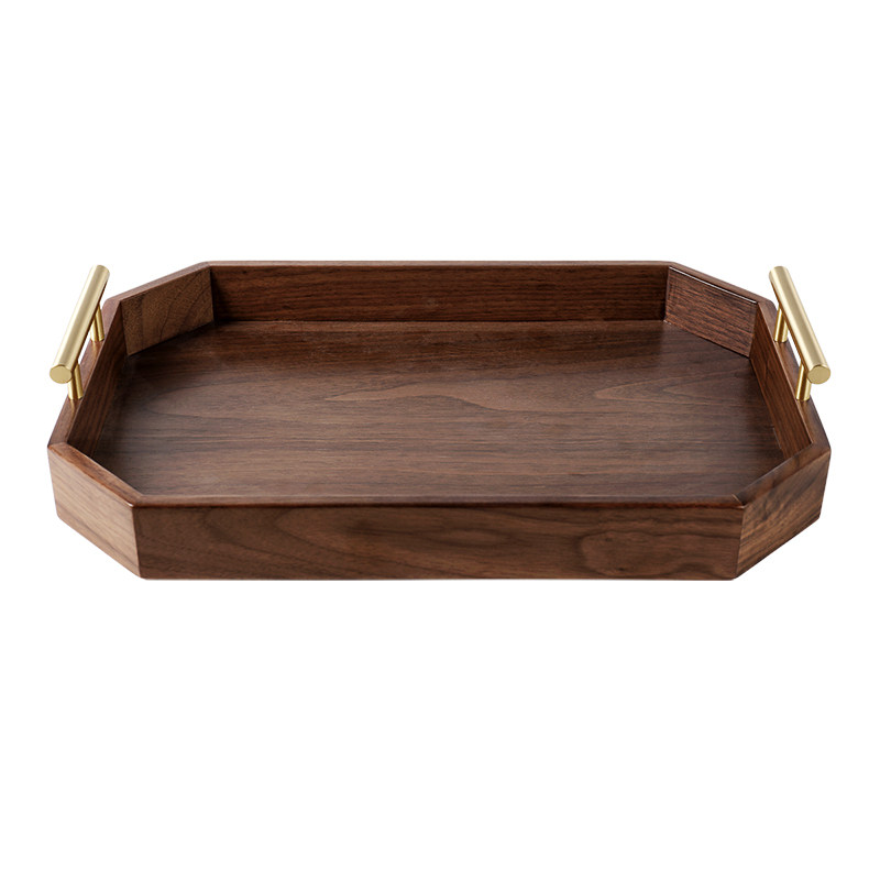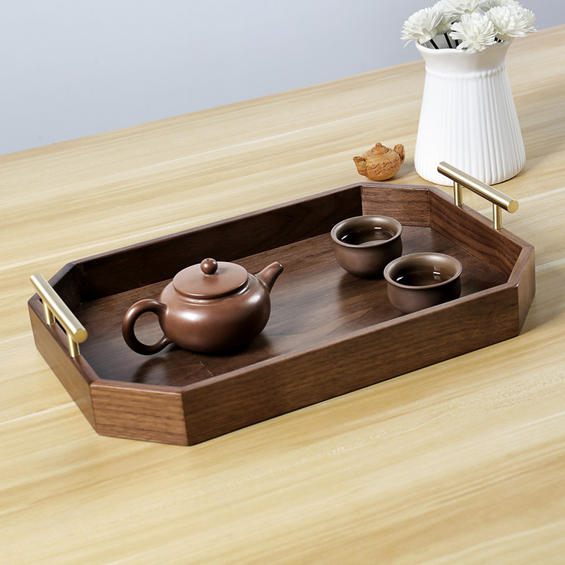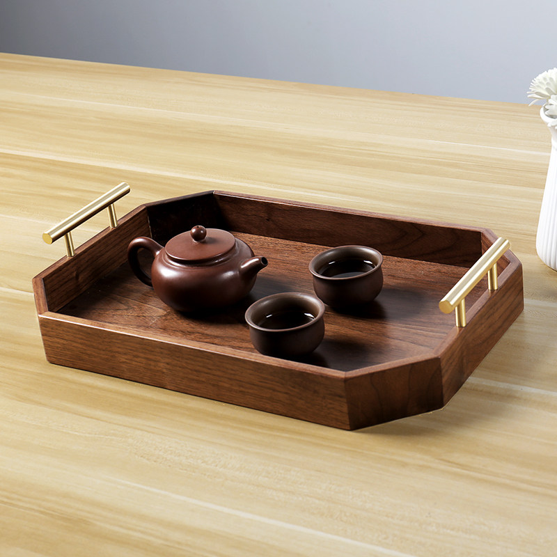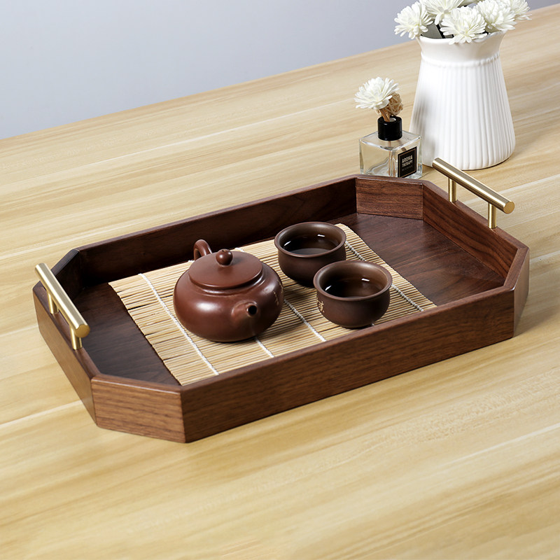 黑胡桃木托盘长方形茶盘水杯水果置物架高端轻奢蛋糕零食收纳盘
