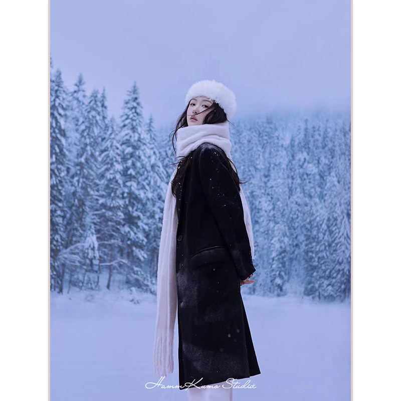 冬季松树雪景时装商业广告服装拍摄婚纱照相馆摄影大雪喷绘背景布