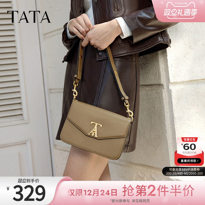 TATA他她通勤腋下包女包包气质休闲黑色小方包单肩包新款X3372DX4