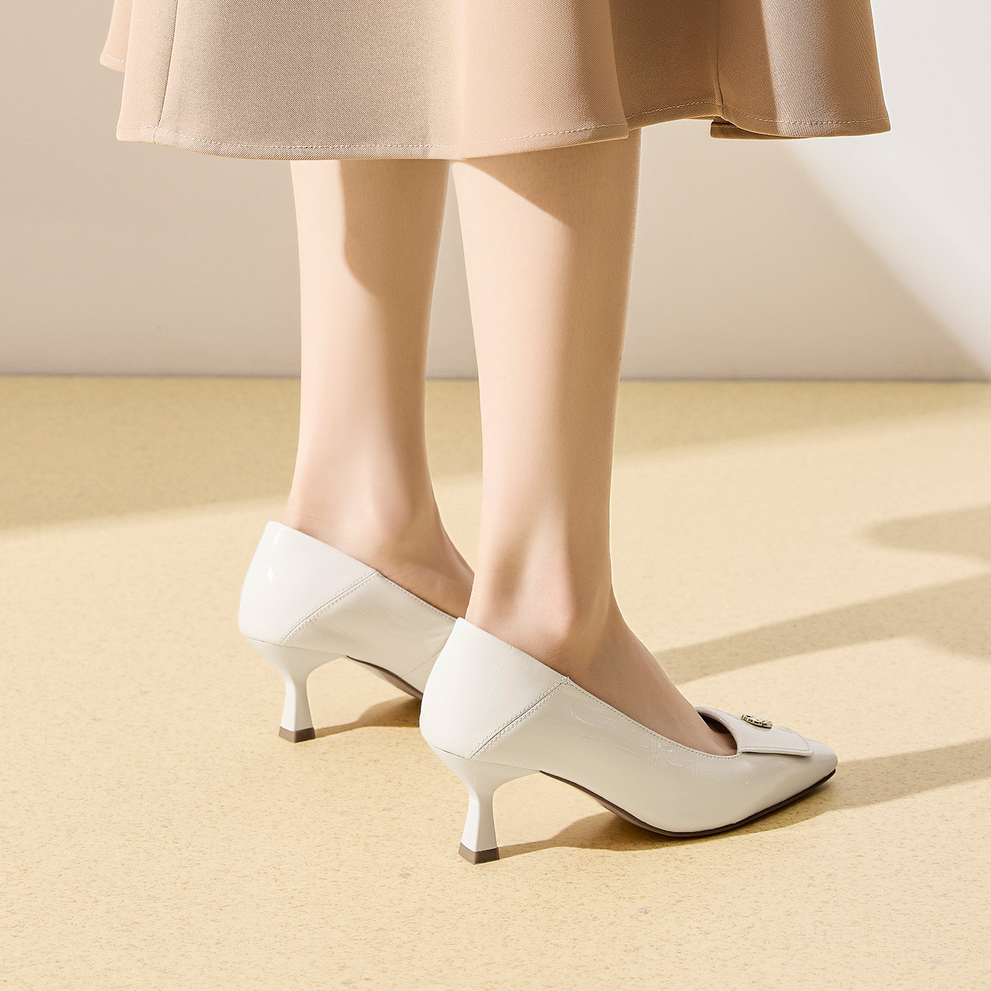 【明星同款|静音系列】千百度练习曲裸色高跟鞋真皮通勤法式单鞋