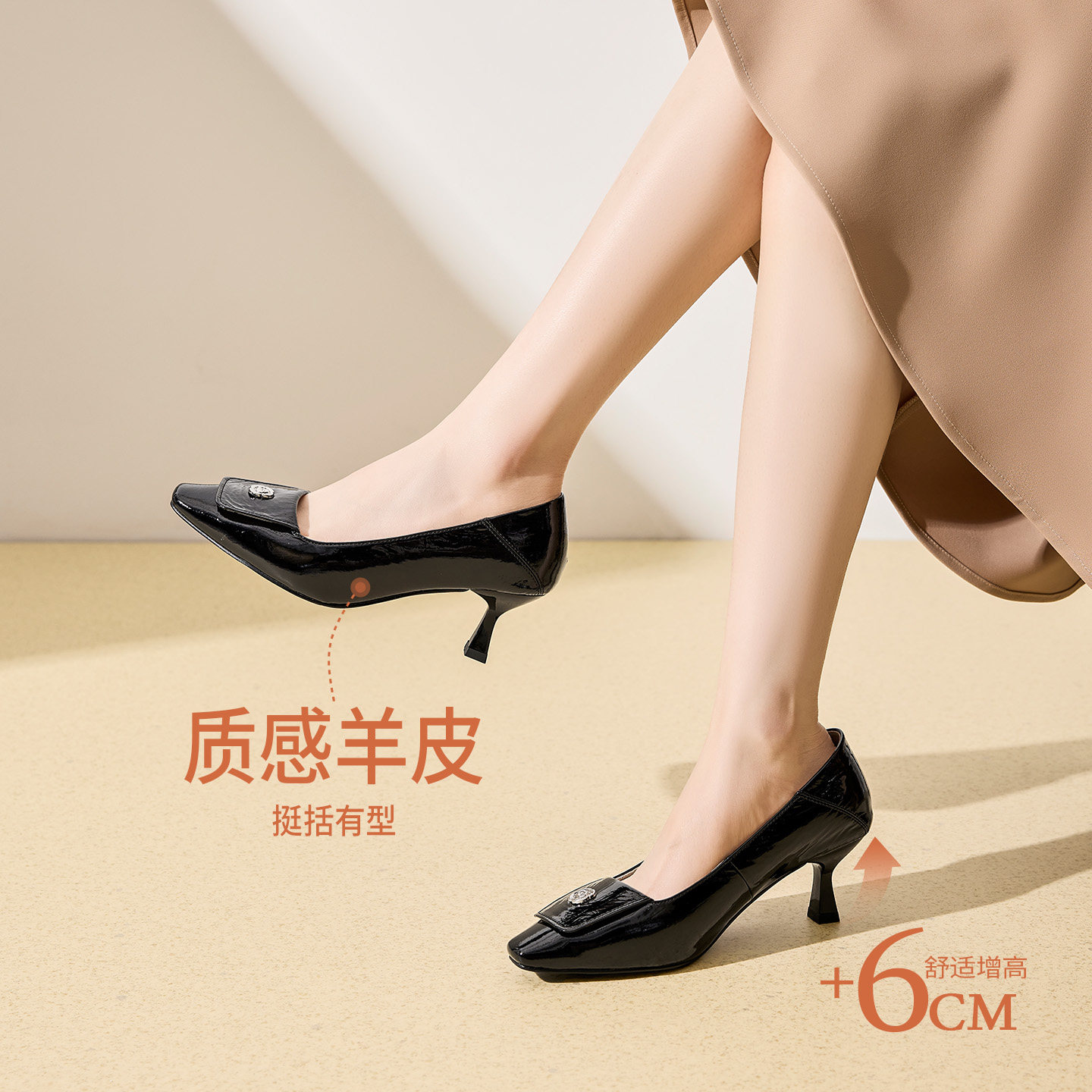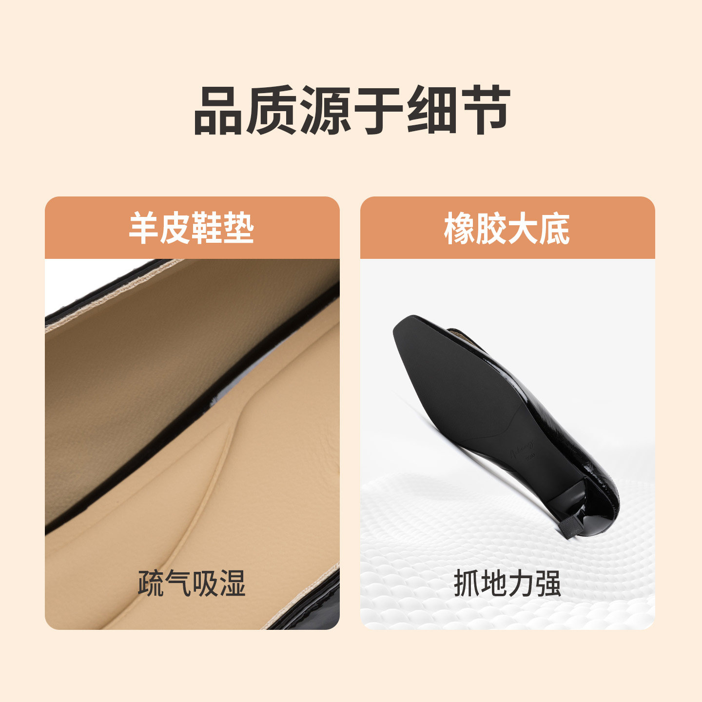 奥康 女鞋2026春季新款单鞋船鞋浅口法式中跟瓢鞋低跟通勤鞋