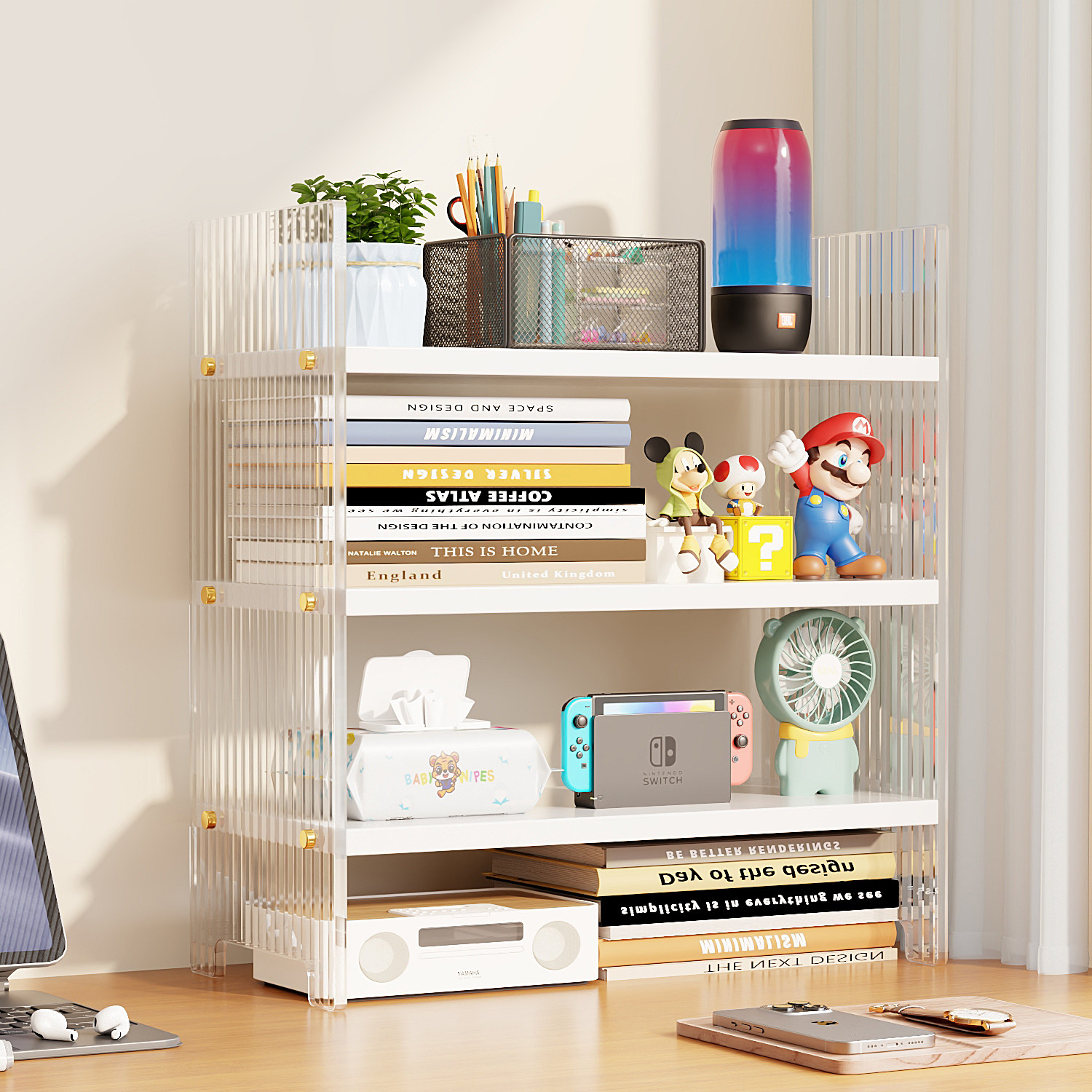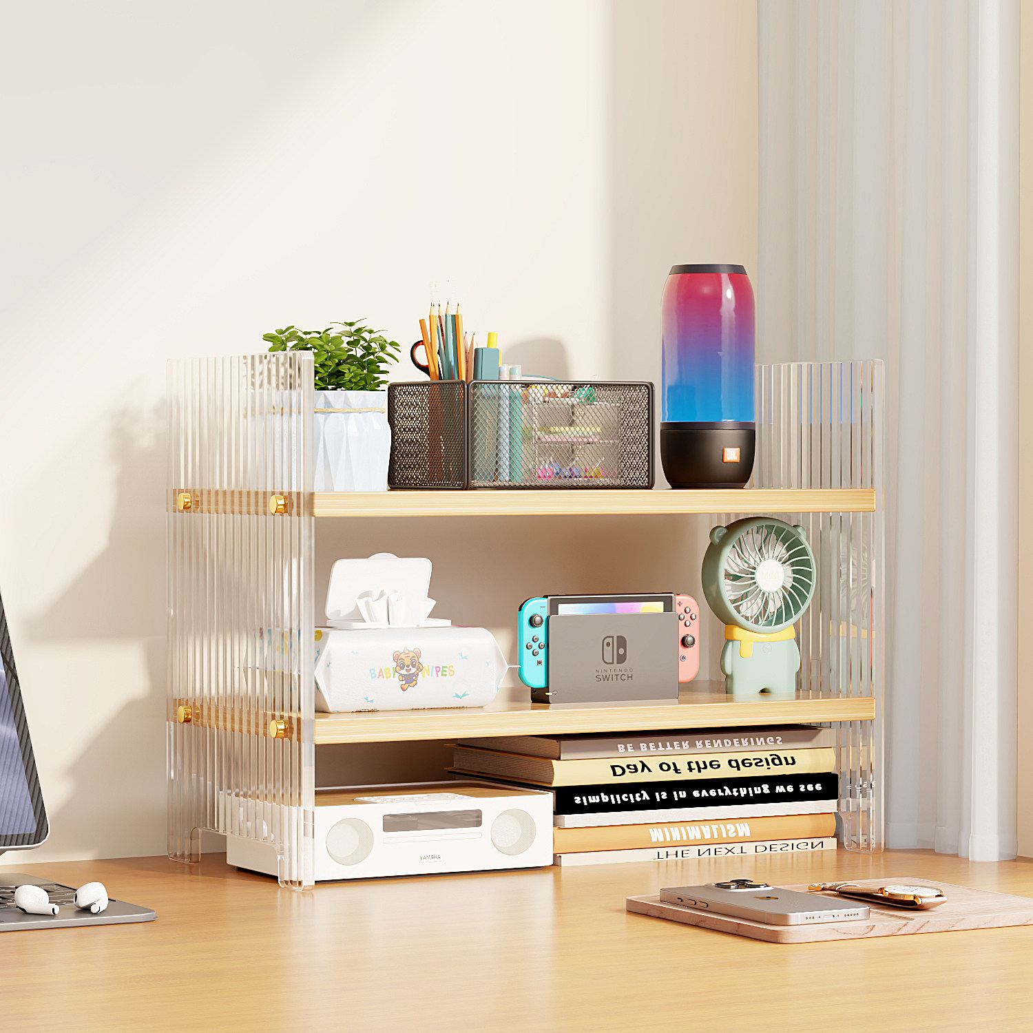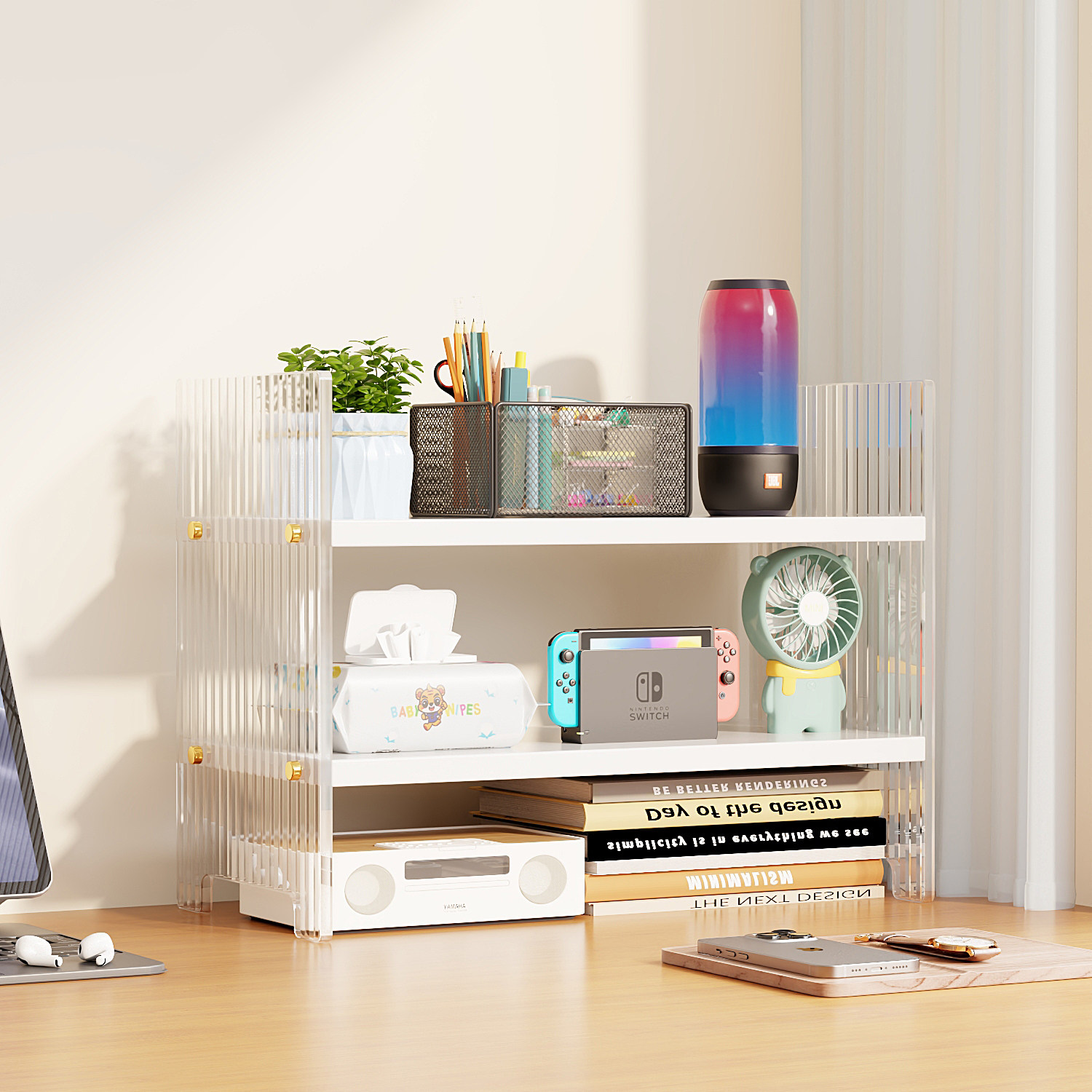 亚克力桌面书架桌上置物架办公桌收纳架宿舍学生多功能加高分层架