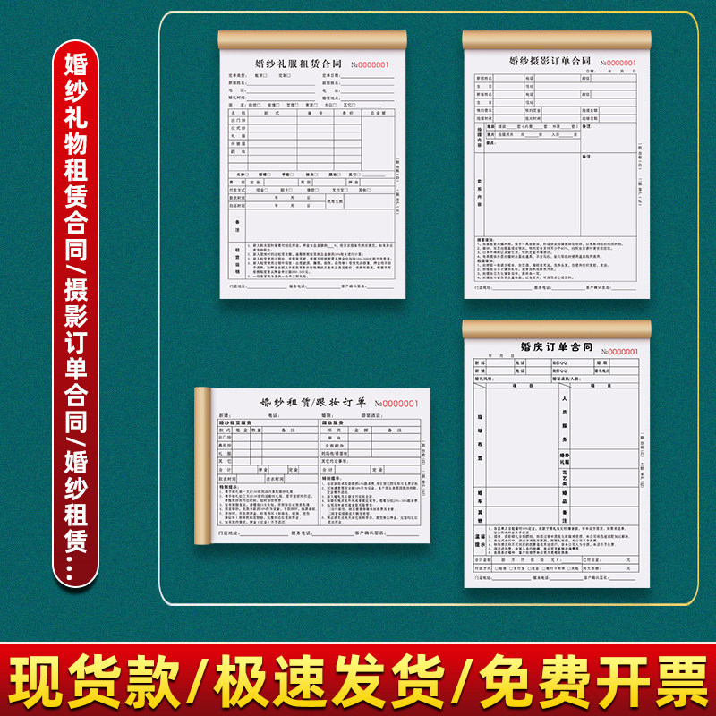 婚庆合同婚车公司车队订单本收款单婚礼定单收据婚纱礼服租赁协议
