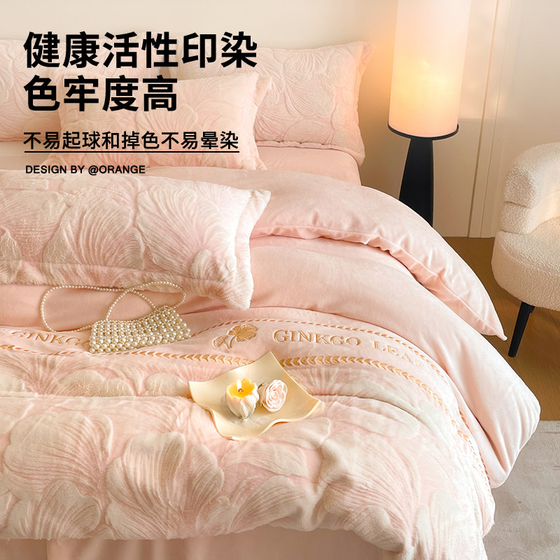 猫人雕花牛奶绒床上四件套秋冬季珊瑚绒加厚床单被套床笠床品套件