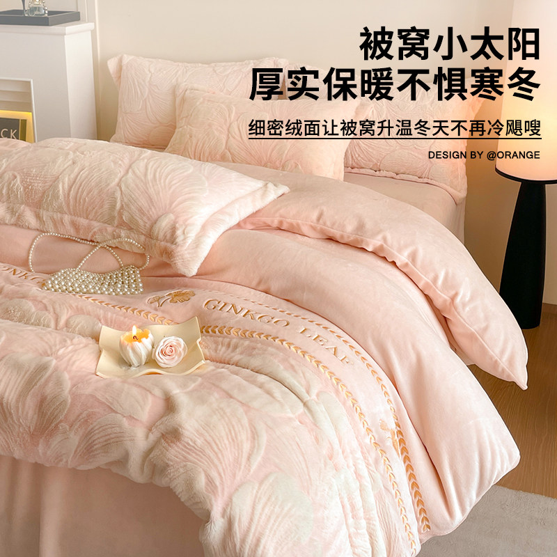 洁丽雅牛奶绒四件套冬季珊瑚绒被套床单加绒毛绒法兰绒床上三件套
