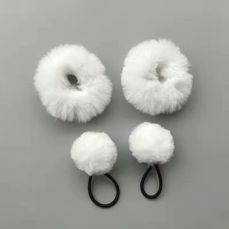 白色毛绒发圈双马尾萝莉可爱软妹lolita仿兔毛JK发绳圆球发绳白球