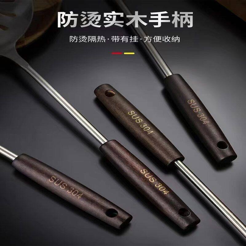 桃木不锈钢锅铲家用厨房炒菜加厚铁铲煎铲漏勺木手柄防烫厨具套装