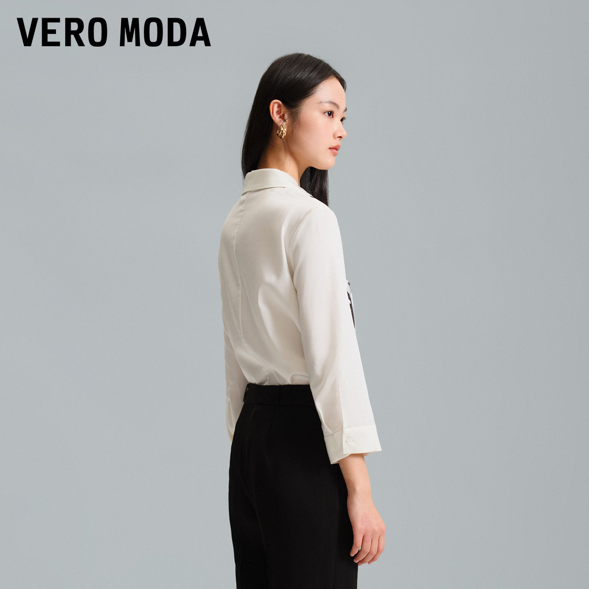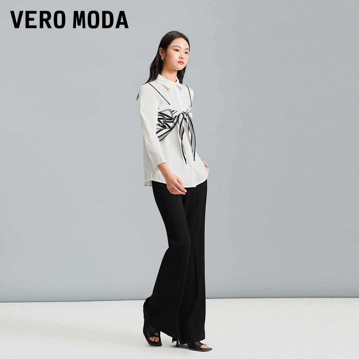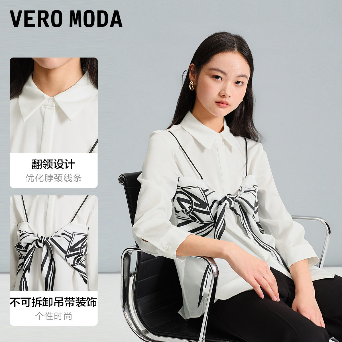 Vero Moda奥莱衬衫女秋季新款假两件印花吊带直筒优雅通勤上衣