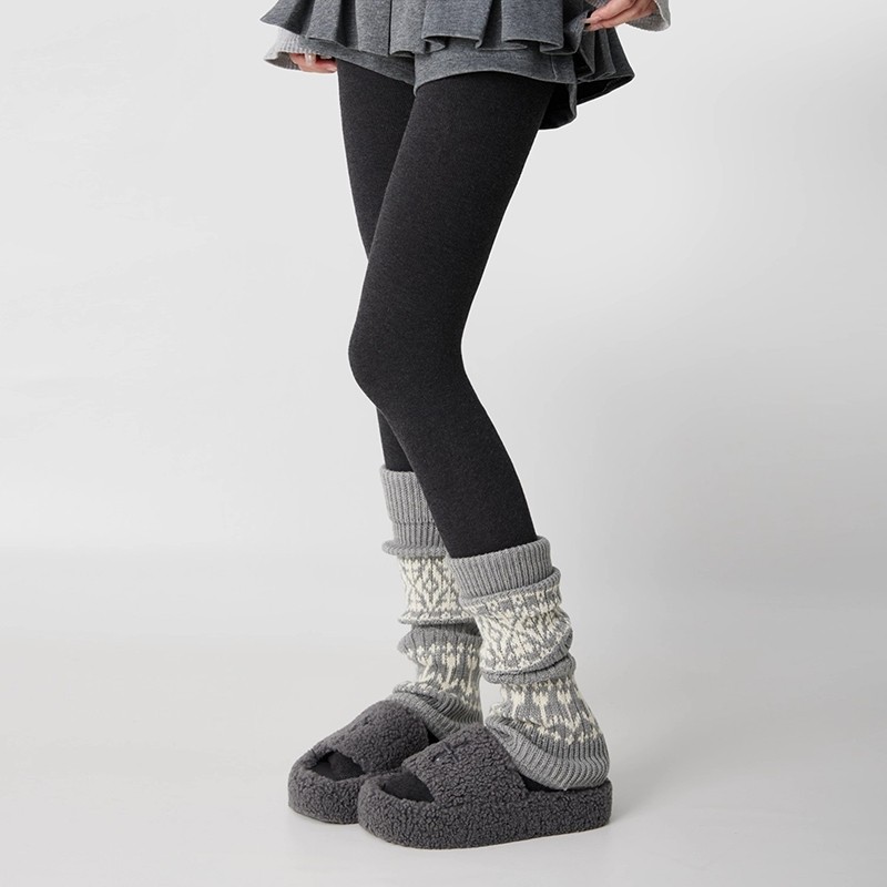 复古费尔岛堆堆袜套秋冬加厚保暖灰色腿套羊毛袜子2025新款爆款冬