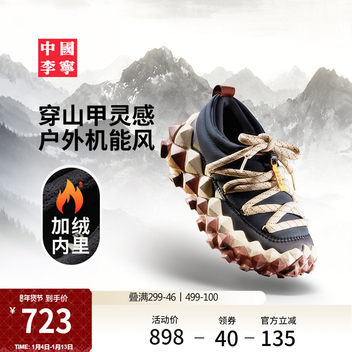 中国李宁穿山休闲鞋男女新款情侣加绒鞋潮流一脚蹬低帮运动鞋子