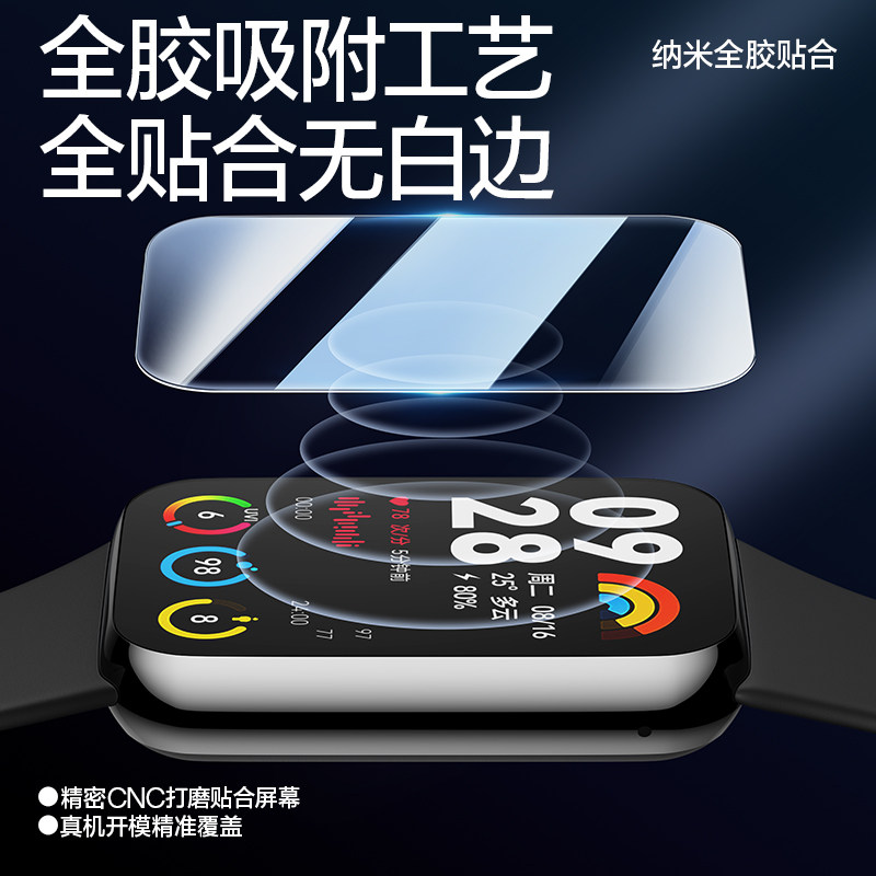 闪魔适用小米手环9pro手表软膜10NFC全屏8Pro钢化膜红米watch4膜